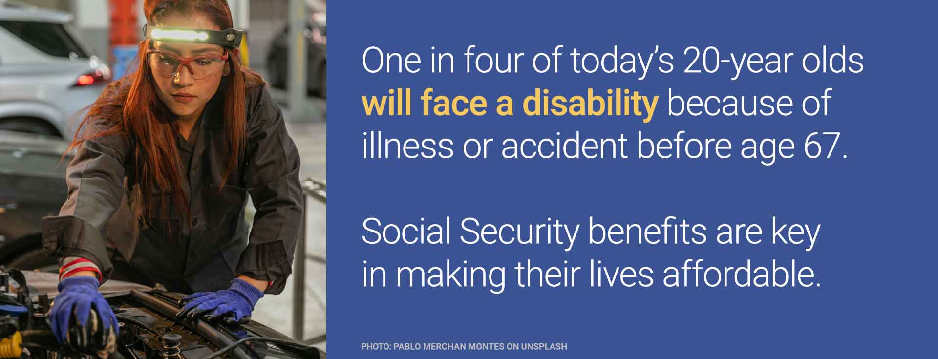 Here’s a concerning statistic. The SSA reports that one in four of today’s 20-year-olds will face a disability before they turn 67. This could be due to an illness or an accident that qualifies them for disability benefits.